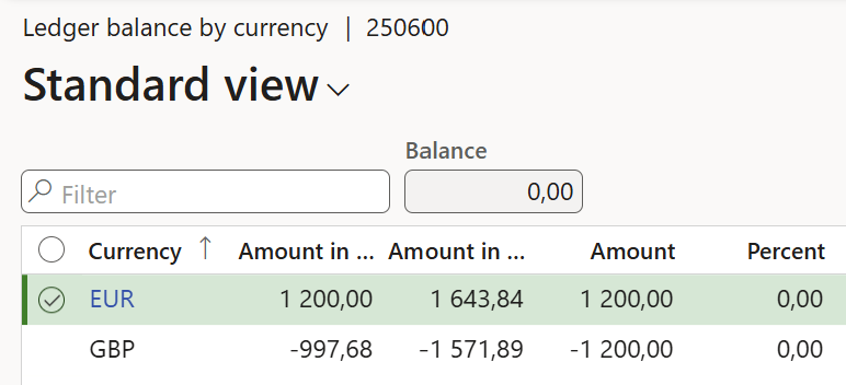 At invoice posting, the exchange rate is effectively fixed, and from there, the deferral engine operates purely in accounting currency. This becomes visible when the deferred balance is fully recognised. In accounting currency, the balance reaches zero as expected. In transaction currency, however, it does not. Residual amounts remain not because of revaluation or fluctuating exchange rates, but because the postings were never aligned in the first place.